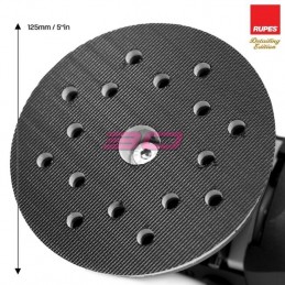 ORBITAL ALEATORIO: el plato sigue un movimiento orbital (cuya amplitud depende de la distancia entre el eje de rotación del árbol de accionamiento y el eje central del plato) y es libre para girar en torno a su propio eje central. El plato es libre para girar a distintas velocidades y en direcciones diferentes por el efecto de la fuerza centrífuga del movimiento de offset y por el efecto de fricción. El movimiento orbital aleatorio es, en este momento, la mejor opción en términos de eficacia y calidad del tratamiento de superficie.