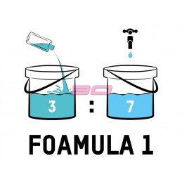 Dilución alternativa para rociador de presión: De 1:5 (ruedas con suciedad resistente) a 1:20 (suciedad ligera) en función del estado de limpieza del vehículo. Agitar si es necesario y aclarar bien.