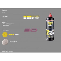 El pulimento medio clásico, para una rápida eliminación de los signos de uso. Altamente efectivo, elimina rápidamente las marcas de lijado y contaminación de la superficie, ofreciendo como resultado un alto nivel de brillo y un profundo acabado espejo.